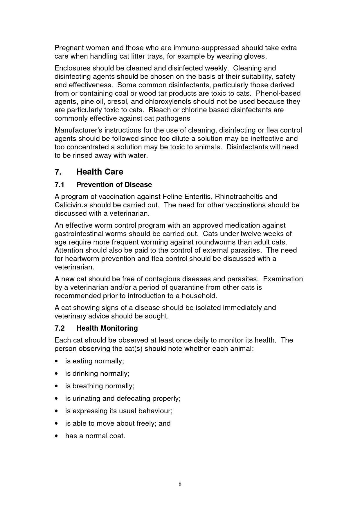 Этот свод правил является руководством для лиц, ответственных за содержание и заботу о домашних кошках. Правила основываются на принципе благополучия и учета основных физических и поведенческих потребностей животного.