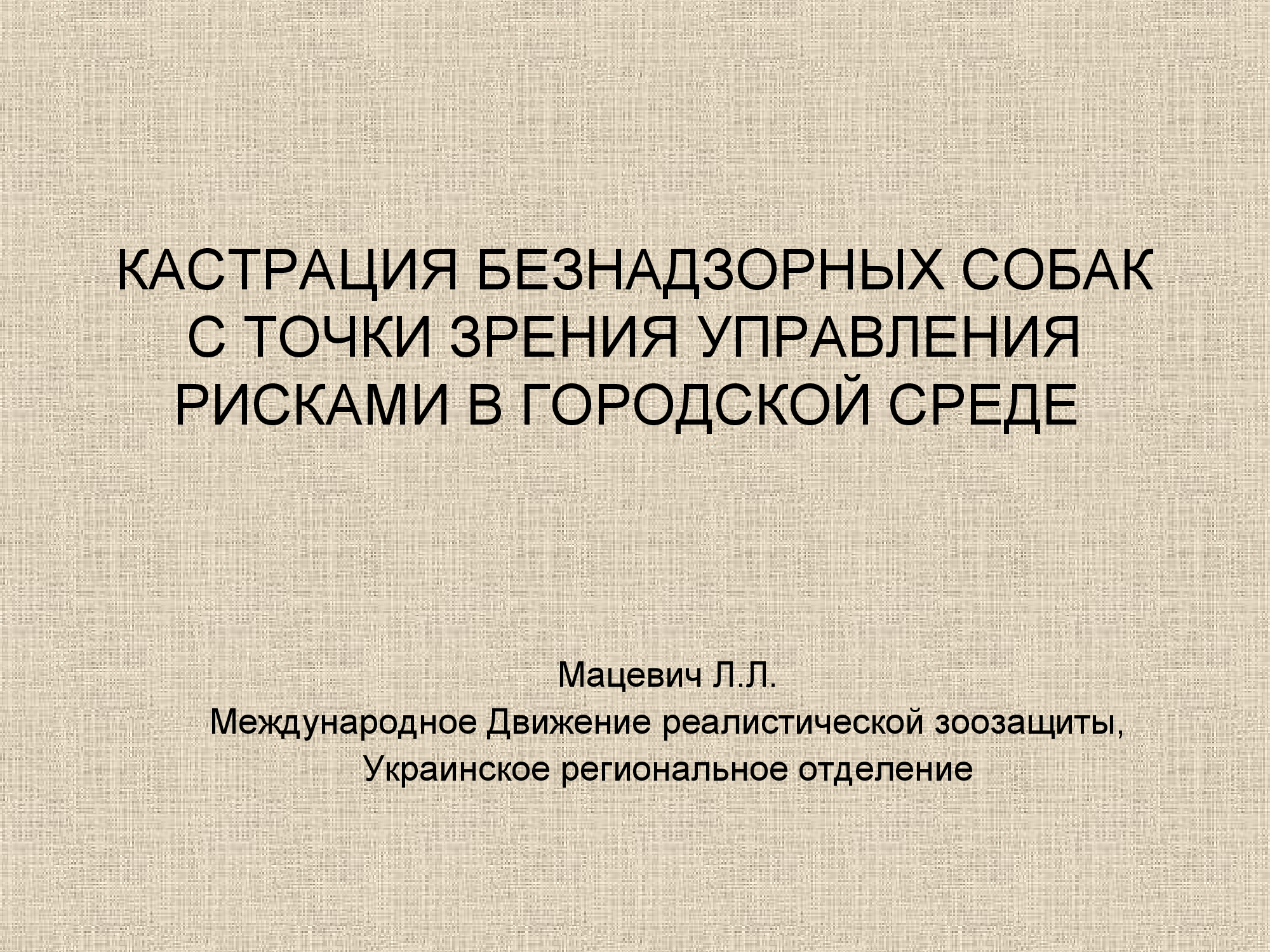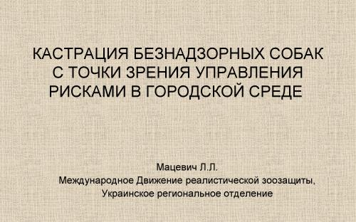 В последнее время в Украине широко популяризуется такой подход к управлению популяциями безнадзорных животных, как стерилизация самок с возвратом на прежнее место обитания (программа "отлов-стерилизация-возврат", иначе ОСВ); при этом общественными организациями и различными СМИ распространяется тезис о снижении уровня агрессии и конфликтности у кастрированных самок собак. Однако это утверждение, являющееся одним из важных аргументов, выдвигаемых в пользу социальной приемлемости ОСВ, никогда не подвергалось всестороннему научному анализу.