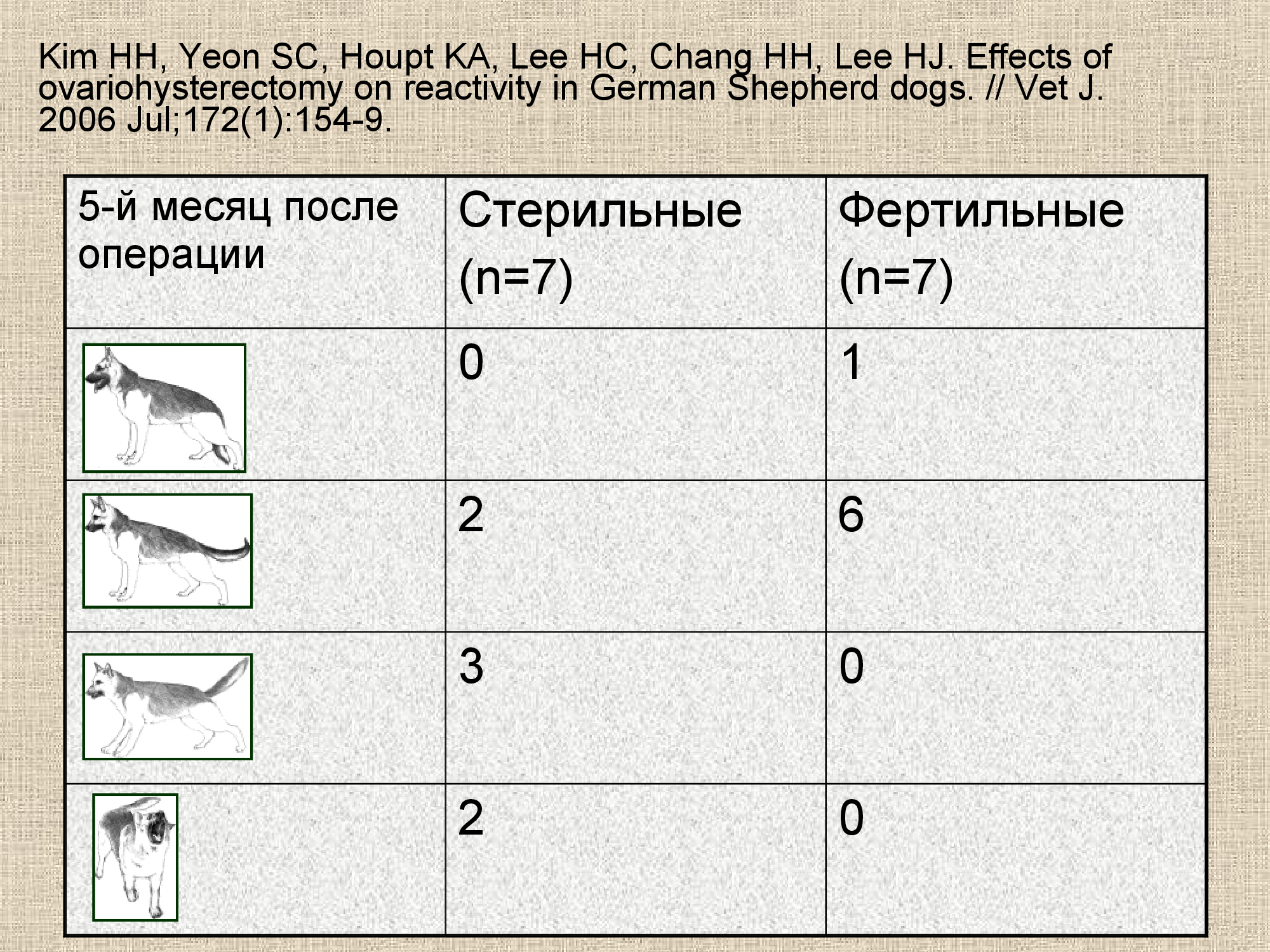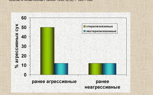 Таким образом, совокупность наработанных за три последних десятилетия данных, как минимум, не указывает на снижение уровня агрессии и конфликтности кастрированных сук. Более того, данные свидетельствуют, скорее, о повышении уровня агрессии вследствие кастрации.