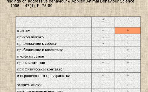 - Yuying Hsu, Liching Sun. Factors associated with aggressive responses in pet dogs // Appl Animal Behav Sci – 2010. – 123(3), P 108-112