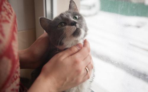Кошка Серяшка попала к нам через отлов. Животное гуляло на улице, вместе с бездомными котами и кошками. Наши сотрудники, выполняя свою работу, отловили животное и привезли к нам в приют. Хозяин только на следующий день обнаружил, что его кошки нет дома. Его соседи ему рассказали, что кошка в городском приюте для животных. Проведя все необходимые процедуры: регистрация и вакцинация, мы выдали кошечку хозяину, прежде, предупредив мужчину о последствиях самовыгула кошки в общественных местах. И испуганная Серяша, не понимая, что происходит, поехала домой.
