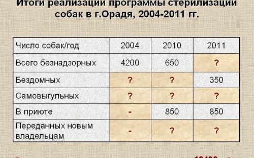 Программа ОСВ в г.Орадя (Румыния) позиционируется как одна из самых удачных: декларируется снижение численности бездомных собак от 4200 до 350 особей на протяжении 2004-2011 годов. Однако, при изучении сведений, предоставленных спонсором и исполнителем программы [7; личное сообщение], оказывается, что исходное число животных существенно завышено: в него вошли также имеющие владельцев собаки, выпущенные на самовыгул. Кроме того, в 2011 году, кроме 350 уличных собак; имеется еще 500 содержащихся в частном приюте, и 350 – в муниципальном приюте Оради. Таким образом, исходное количество бесхозяйных собак в городе неизвестно, но оно заведомо ниже заявленных 4200; а количество живых бесхозяйных собак на 2011 год составляло не 350 – а 1200 особей. Кроме того, более тысячи животных были изъяты с улиц, и переданы новым владельцам – в том числе, за пределы Румынии. Таким образом, регулирование численности популяции происходило, в значительной мере, за счет массового безвозвратного изъятия.