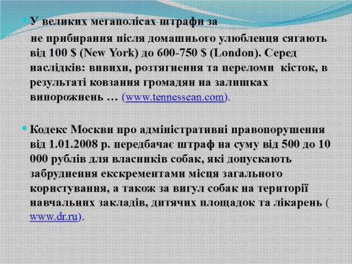 Як показали результати досліджень, зелена зона біля шкіл, дитячий майданчик та майданчик для вигулу собак облаштовані відповідно до санітарно-гігієнічних вимог. Масовий вигул собак має місце поруч зі школами: в парку біля Київського національного університету ім. Тараса Шевченка та в ботанічному саду ім. Фоміна. При обстеженні окремих ділянок нами знайдено яйця гельмінтів. Так, на ділянці №1, яка є зеленою зоною біля середньої школи № 33, у пробах ґрунту виявлено 3 яйця від собак збудника Toxocara canis та 2 від людей – Ascaris lumbricoides. У пробах фекалій собак виявлено 68 яєць збудника Toxocara canis та 16 члеників і 6 яєць Echinococcus granulosus. На ділянці №2, яка є дитячим майданчиком біля цієї школи, у пробах піску знайдено 2 яйця Echinococcus granulosus. На ділянці №3, яка є спеціально обладнаним майданчиком для вигулу собак у пробах фекалій виявлено 6 яєць Toxcara canis, 7 – Toxascaris leonine, 9 – Trichuris vulpis, а також 5 члеників і 3 кокони Dipylidium caninum. На ділянці №4 – це дитячий майданчик біля середньої школи №87, у пробах піску знайдено 2 яйця Echinococcus granulosus. На ділянці №5, яка є зеленою зоною біля середньої школи № 87, у пробах ґрунту виявлено 1 яйце Ascaris lumbricoides, а у пробах фекалій собак 8 яєць Toxоcara canis, 2 членики Dipylidium caninum і 3 Echinococcus granulosus.