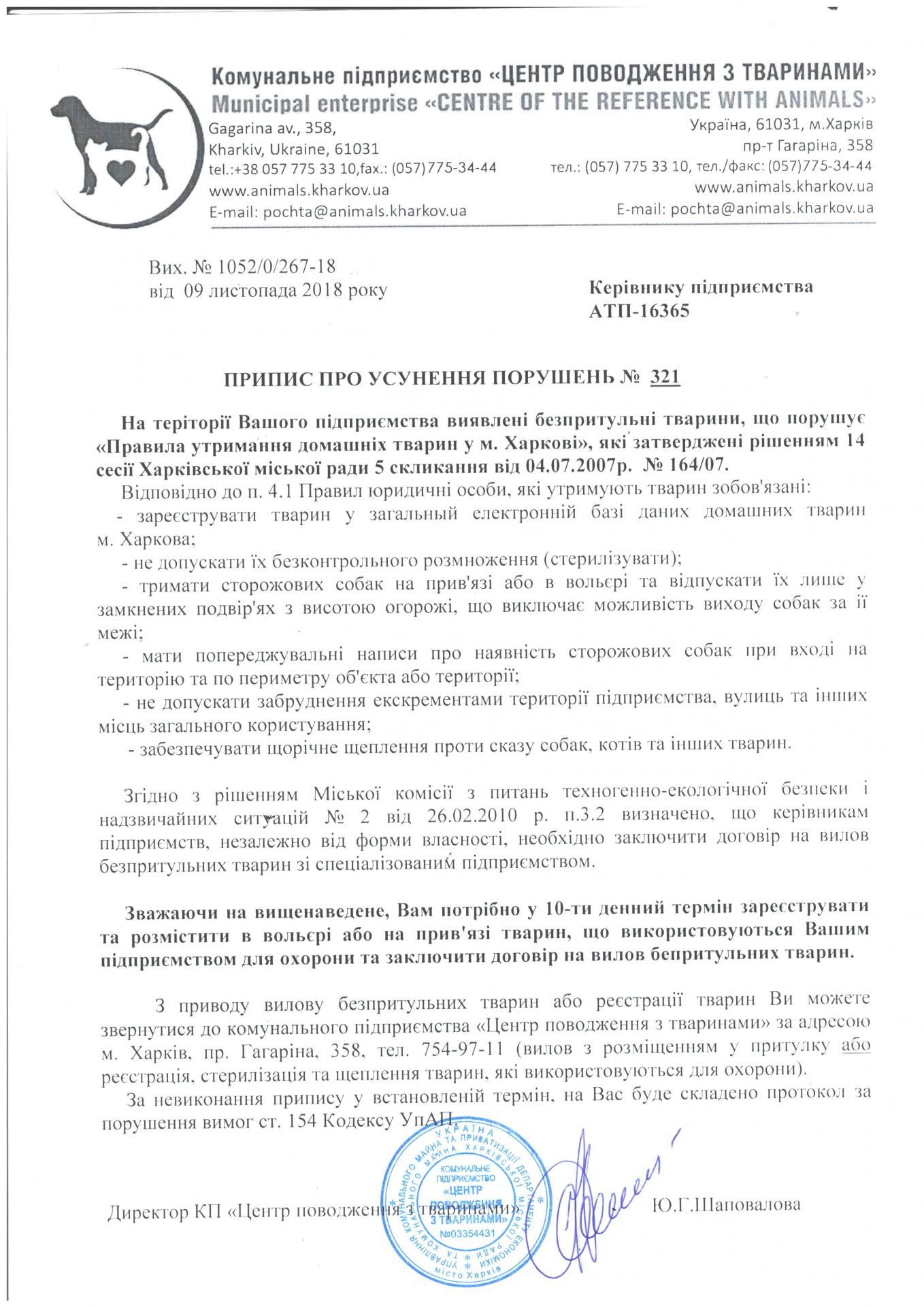 26 октября 2018 г.сотрудниками КП "Центр обращения с животными" был выявлен типичный случай нарушения городских правил на Разъездном переулке, где расположено одно из городских АТП. В КП "Центр обращения с животными" с жалобами обратились жители Харькова, на которых нападают бродячие собаки, обитающие на этой территории, когда люди проходят мимо нее.