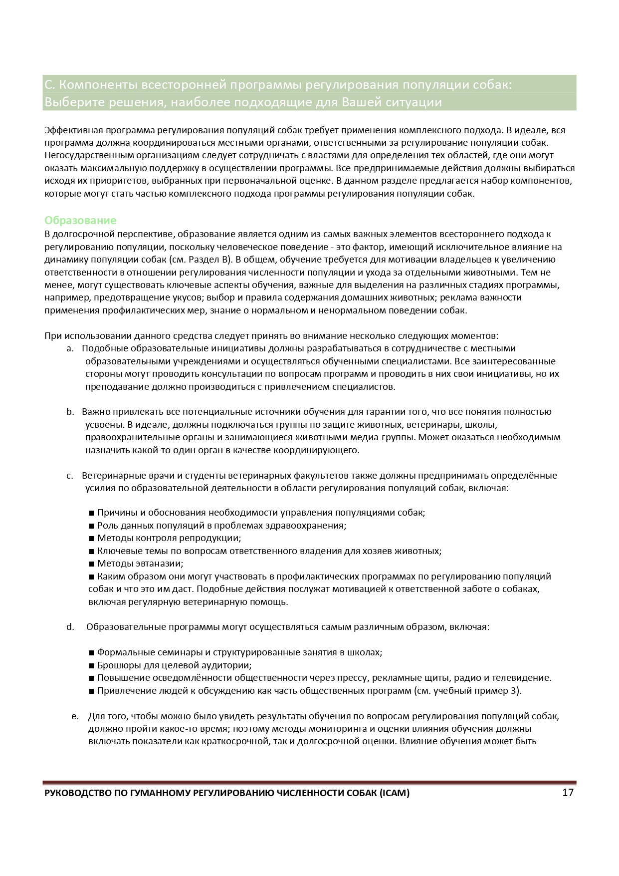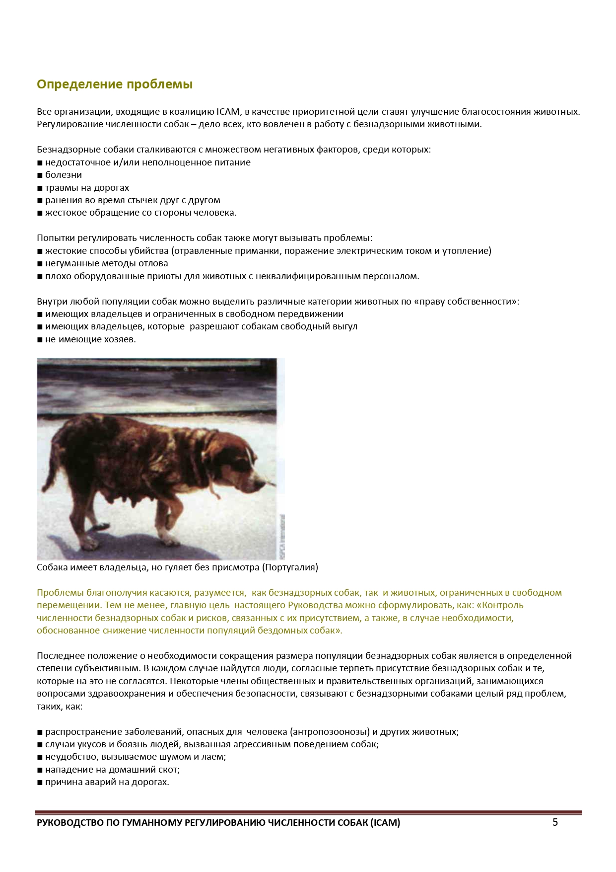 Международная коалиция по регулированию численности животных - компаньонов человека ICAM Руководство по гуманному регулированию численности собак