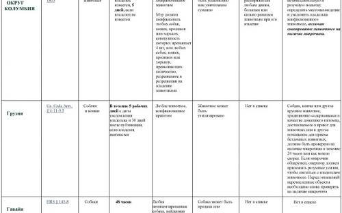 Закони про те, яким чином та на який час можна прив'язувати собаку в тому чи іншому штаті. Закони зведені в одну таблицю, тут також вказані норми шуму, повітря, вимоги до приміщень.