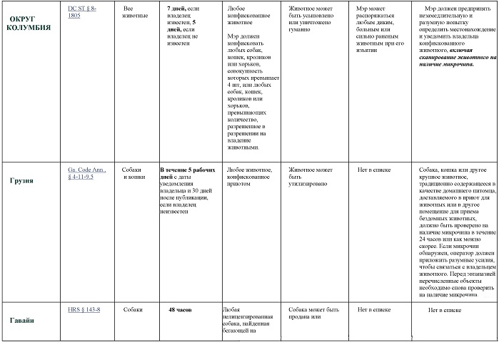 Собаки и кошки будут проверены на наличие микрочипов, и будут предприняты разумные усилия, чтобы уведомить владельца о том, что животное доступно для выкупа. |