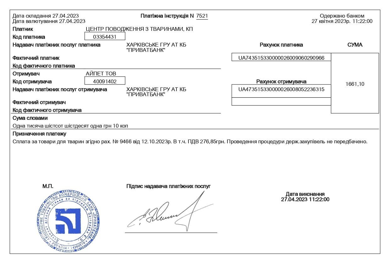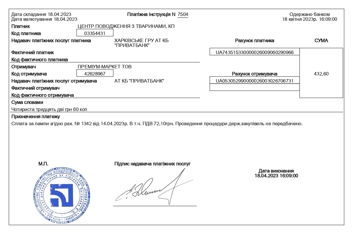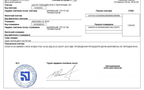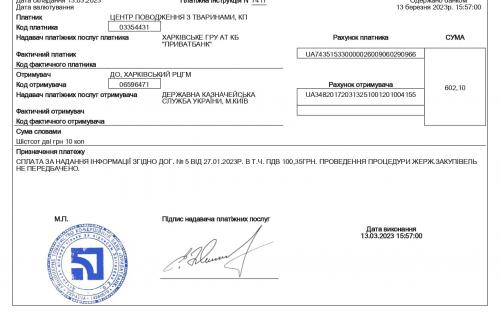 Звіт з надходження благодійних коштів та витрат підприємства за березень та квітень 2023р