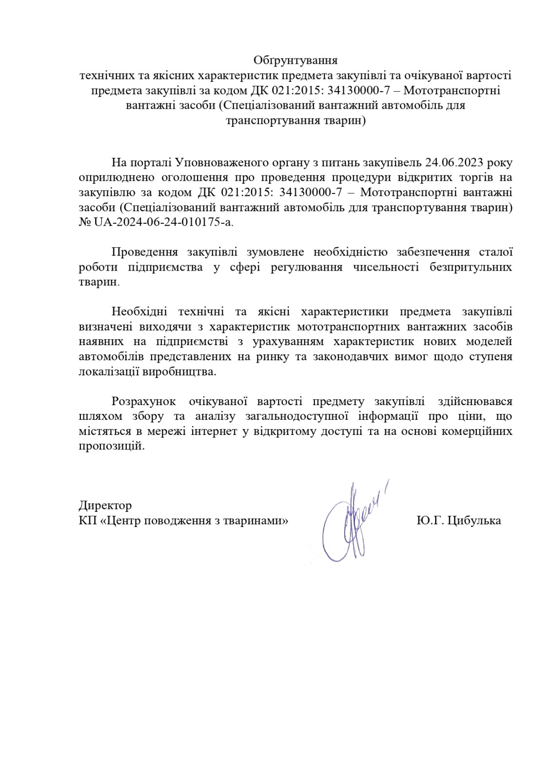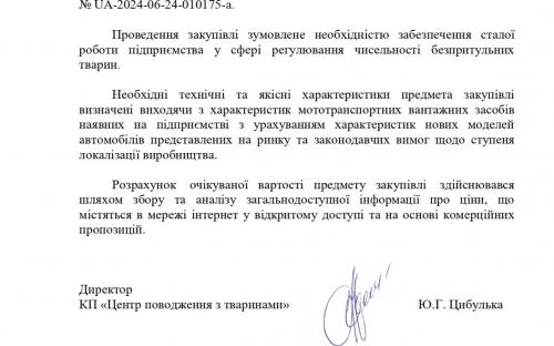 Оґрунтування закупівлі Спеціалізованого автомобіля для транспортування тварин у 2024 році