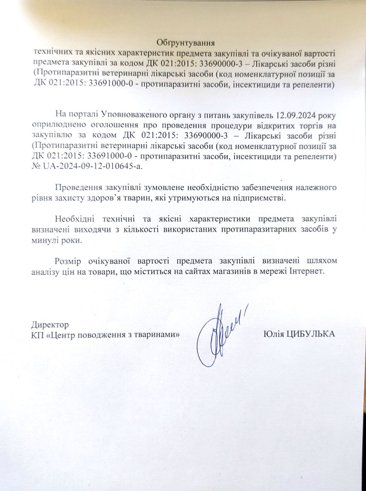Обґрунтування закупівлі протипаразитарних засобів на 2024 рік