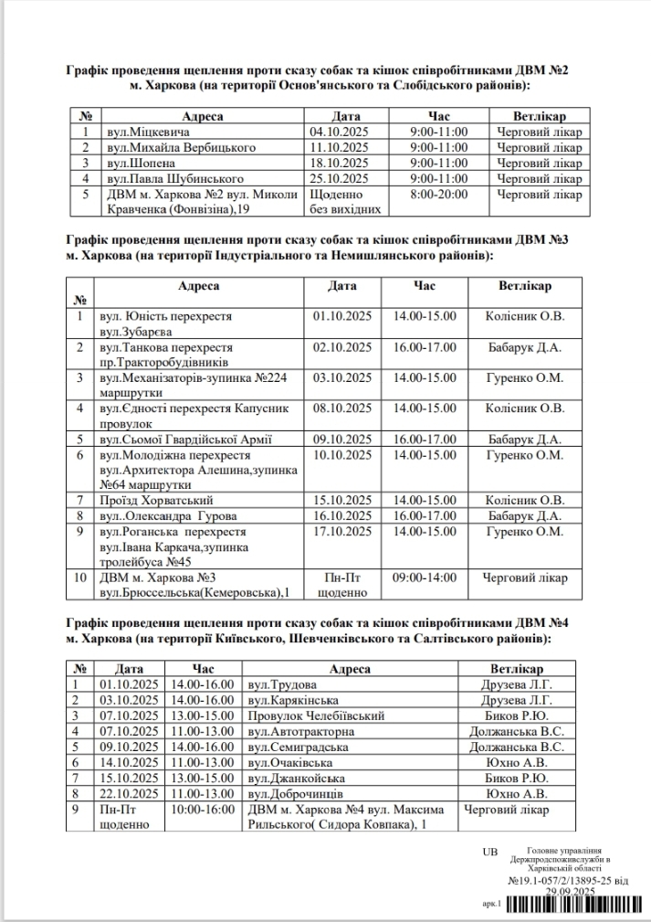 01.10.2025 по 30.10.2025 буде проводитися щеплення тварин проти сказу на