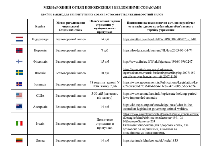 Міжнародна практика поводження з безпритульними собаками