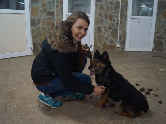 Нашли ее привязанной у входа в КП в начале октября. Восстанавливали долго – собака была истощена и перепугана, да и смена обстановки после предательства прежнего владельца сильно подкосила животное.