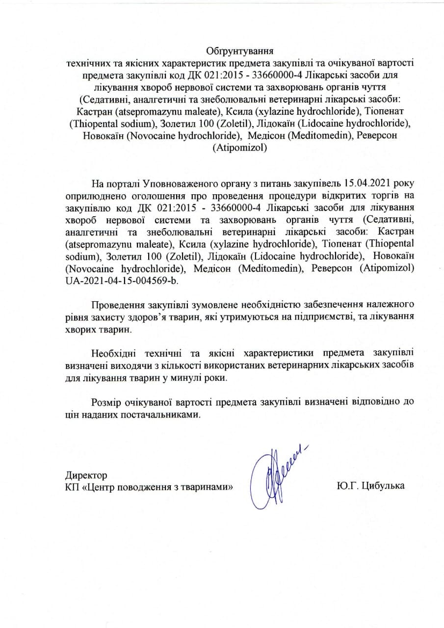 Обгрунтування закупівлі ветеринарних лікарських засобів на 2021 рік