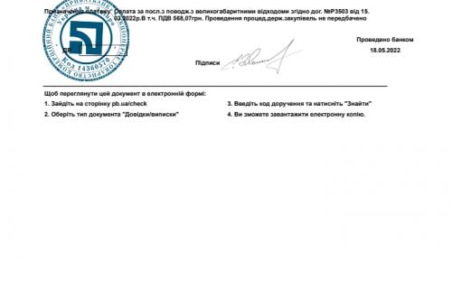 ● Сплачено за вивіз сміття КП "КВПВ" 7831,53 грн