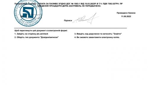 ● Сплачено за вугілля для опалювального сезону ТОВ Теплоенергосервис 90 269 грн