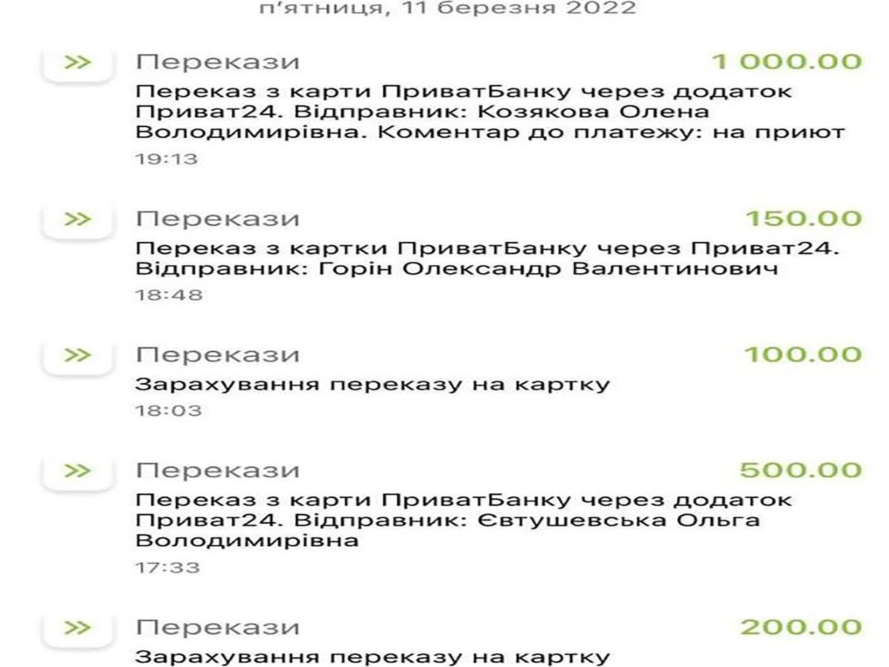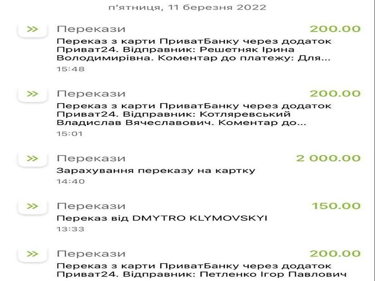 Звіт з надходження благодійних коштів та витрат підприємства за березень
