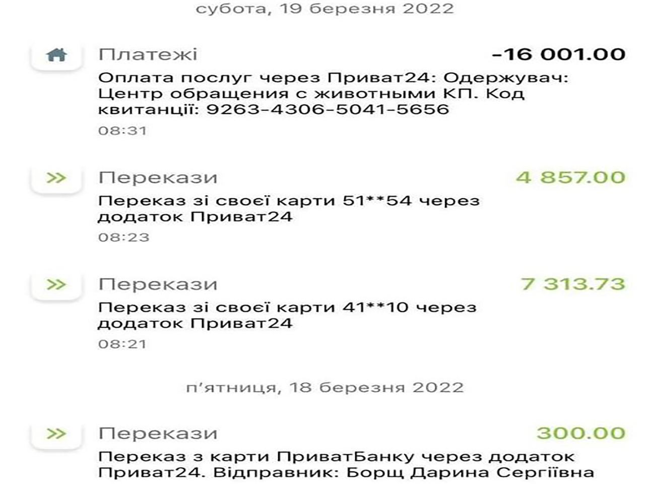 18.03 було сплачено за 500л ДТ, ТОВ «ОІЛ КАРТ СЕРВІС» (доставка корму зі Львова) 25 980грн.;