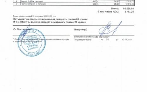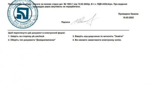 22.03 було сплачено за паливо, ТОВ «ОІЛ КАРТ СЕРВІС» 56 920грн.;