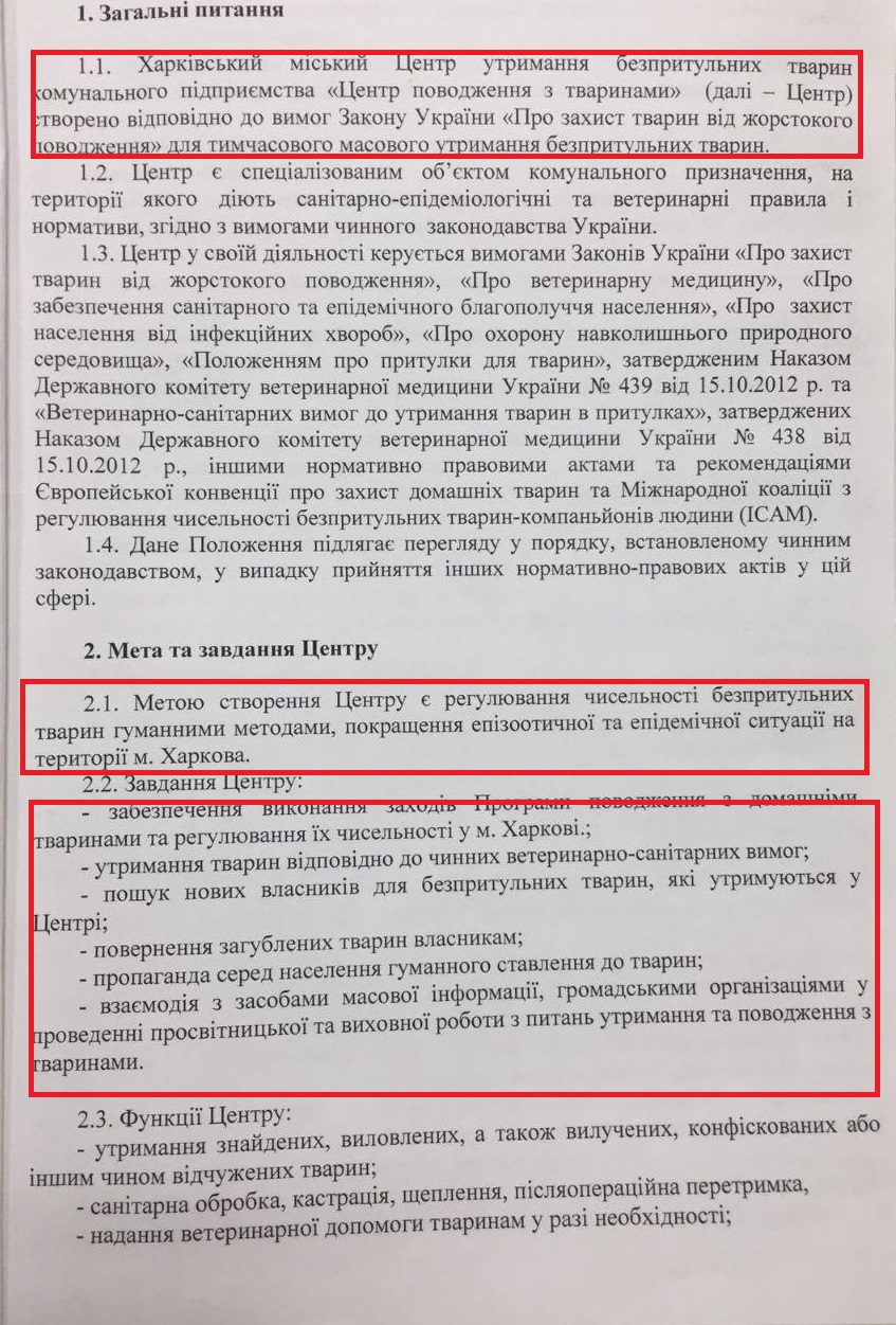 Так, дійсно, документ з такою назвою вони не завіряли, тому що ними був завірений документ з іншою назвою - «Положення про Харківський міський Центр утримання безпритульних тварин комунального підприємства «Центр поводження з тваринами», до функцій якого відноситься пошук власників для безпритульних тварин. Тобто, це і є притулок.