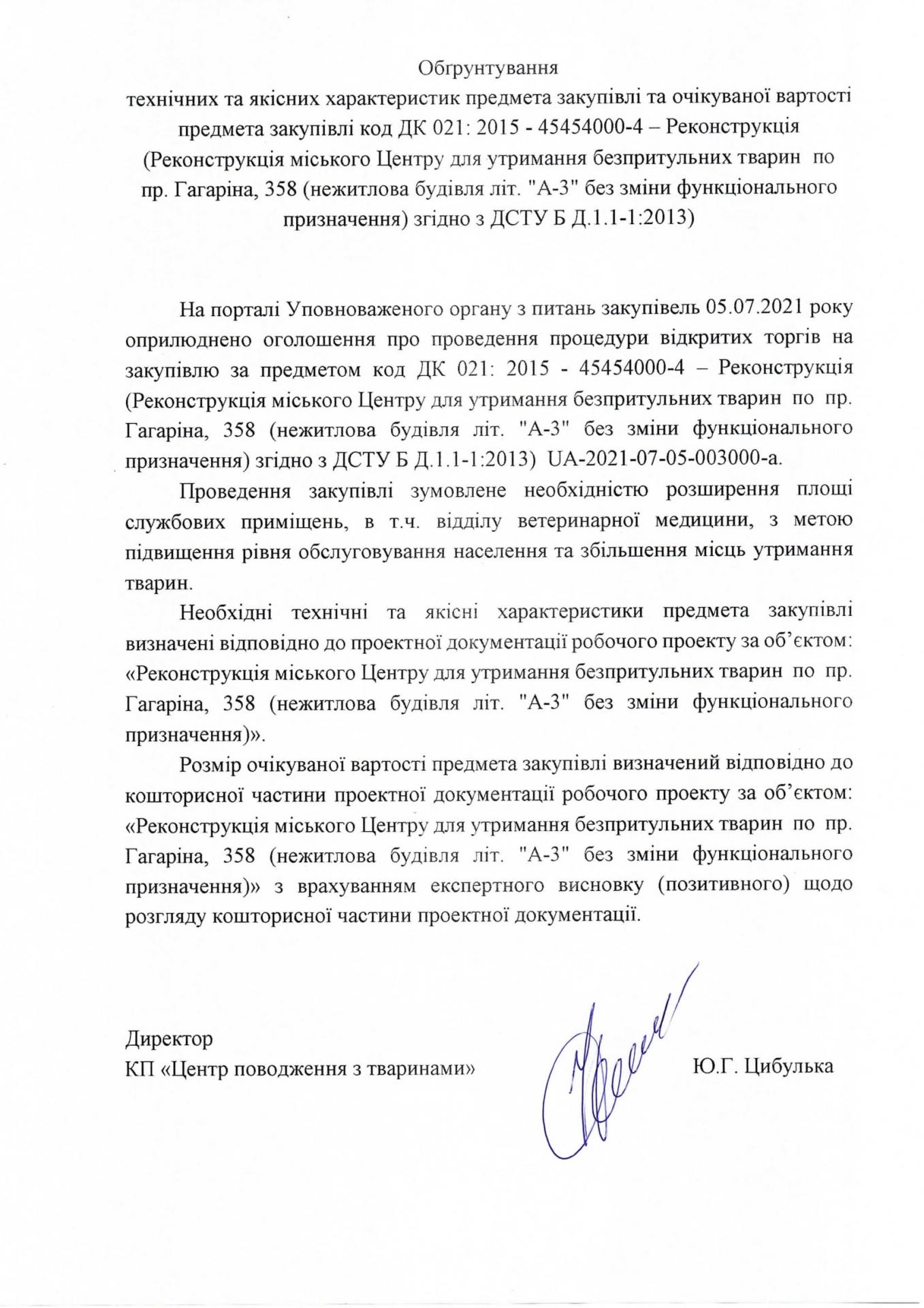Обгрунтування закупівлі реконструкції будівлі 2021р.