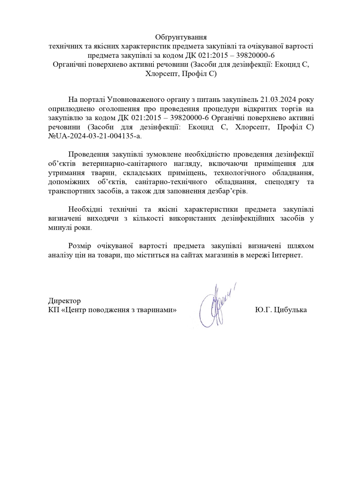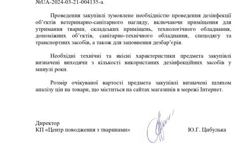 Оґрунтування закупівлі дезінфектантів на 2024 рік