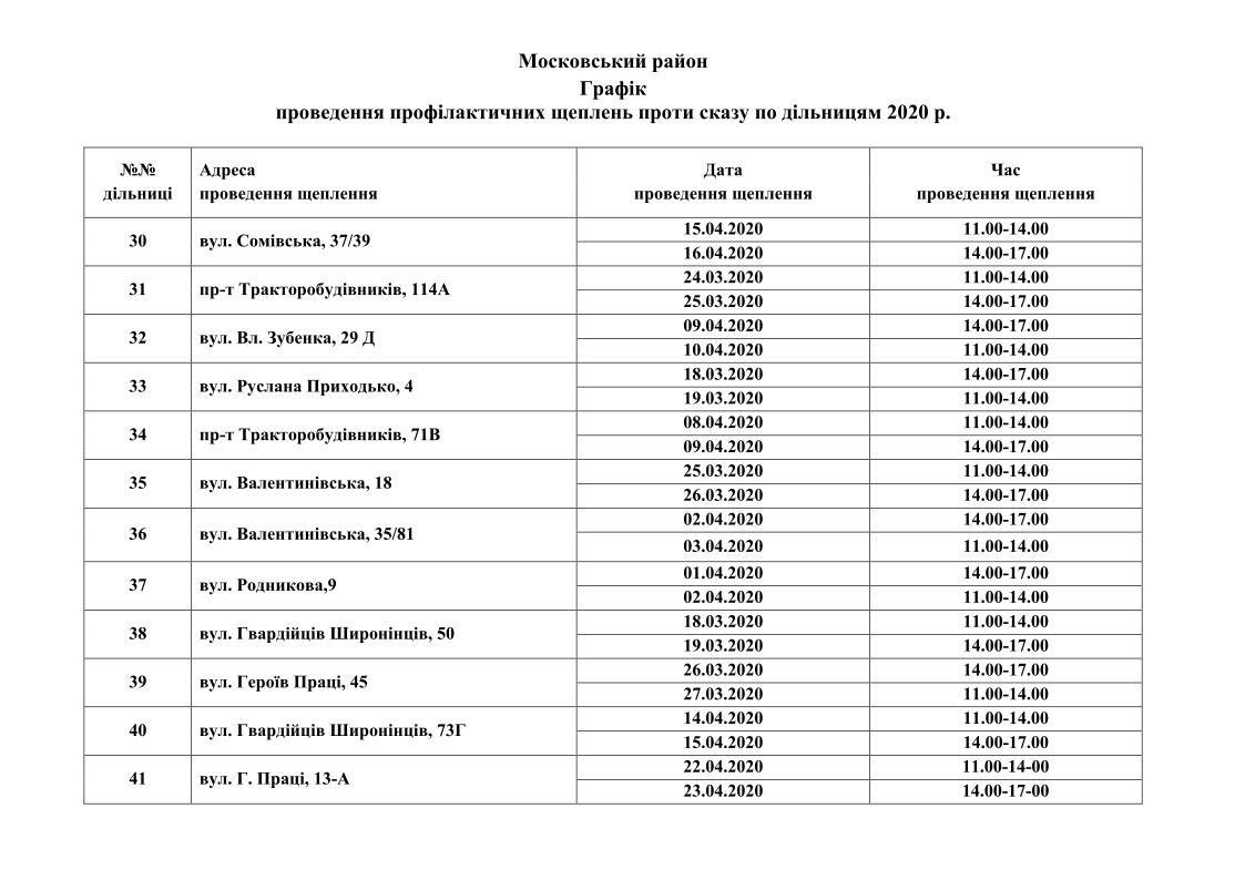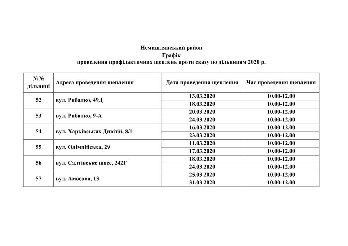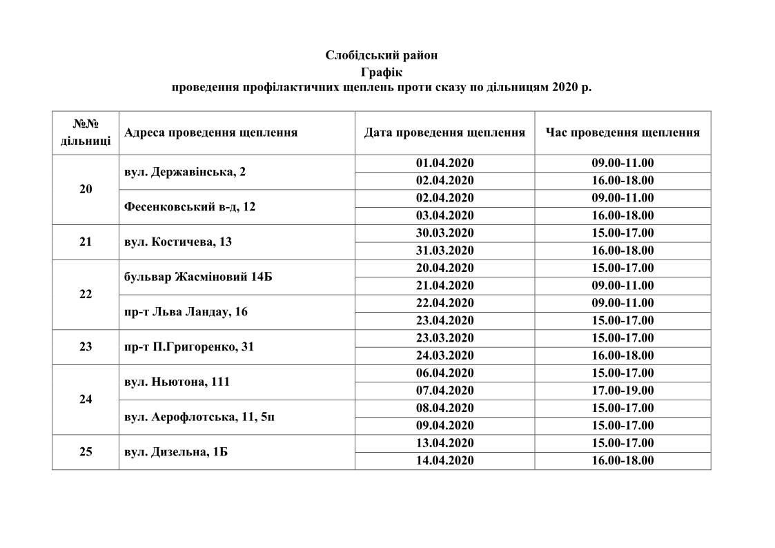 Вакцинація проводиться для домашніх тварин власників, які проживають у будинках комунальної форми власності. Графіки проведення вакцинації приведені нижче.