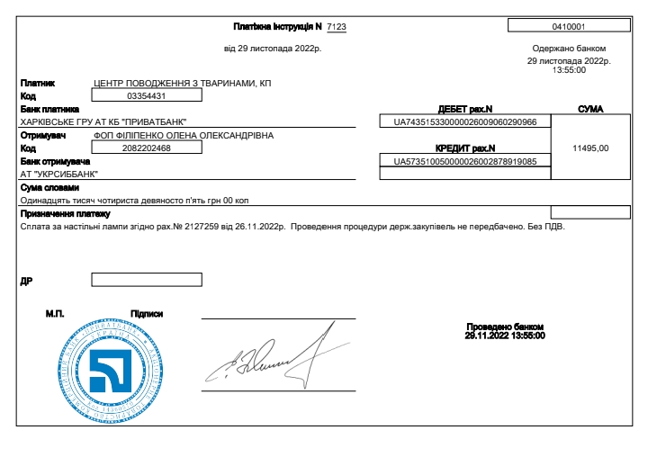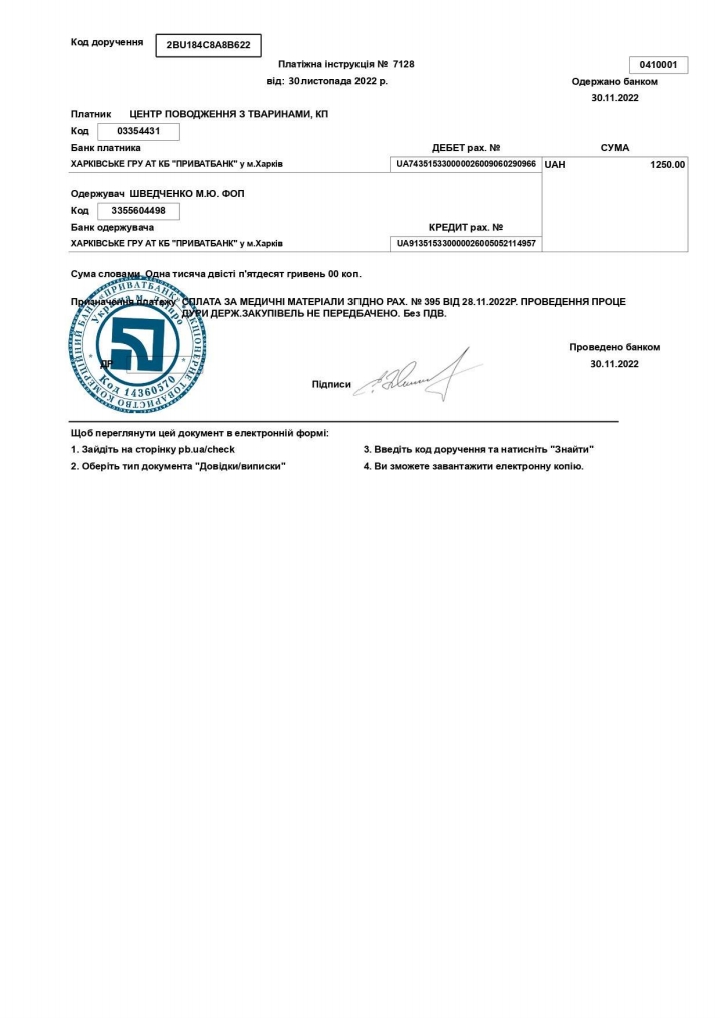 - ветеринарні засоби (післяопераційні коміри, катетери та шприци) - 27 523,22 грн.