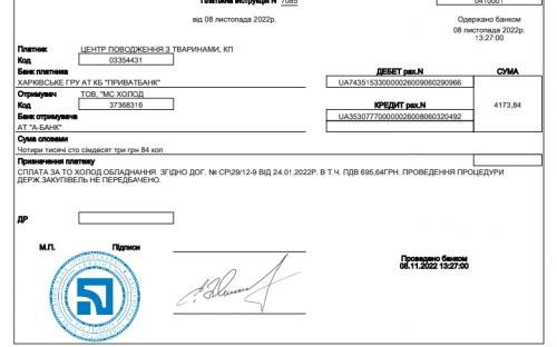 - технічне обслуговування холодильного обладнання - 4173, 84 грн.