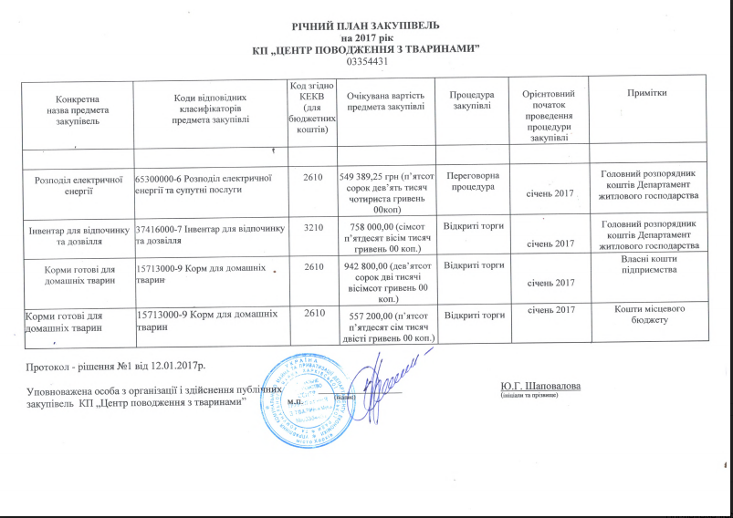 КП «Центр поводження з тваринами»Держзакупівлі