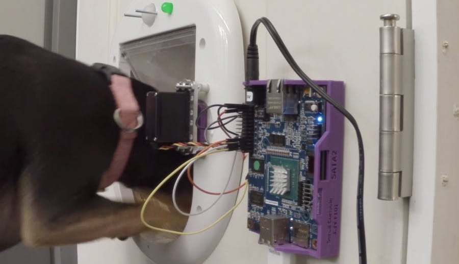Когда питомец подходит к ней, компьютер захватывает изображение с камеры и пропускает его через программу распознавания изображений. Она заранее натренирована на мордочки домашних питомцев и впускает только своих. Часто чужие коты воруют корм из мисок менее проворных соседей. Подобные проблемы обычно возникают в загородной местности, где животные не заперты по домам, а разгуливают где хотят.