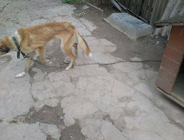"Картина была шокирующая: пес едва держался на худых лапах, цепь тянула шею-соломинку к земле. Очень хороший, был рад, что на него обратили внимание, лизал руки и просил еду. С виду это должна была быть большая собака, но такое небрежное отношение, сделало из пса скрюченный скелет", - отметили волонтеры.