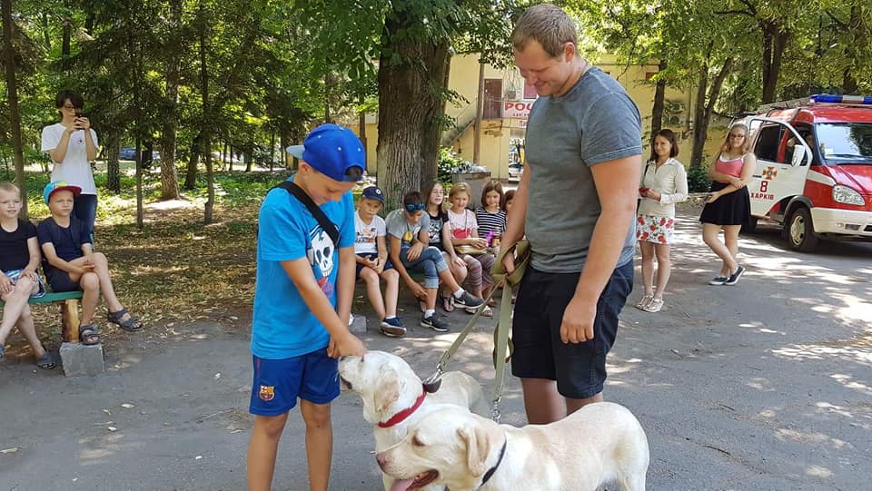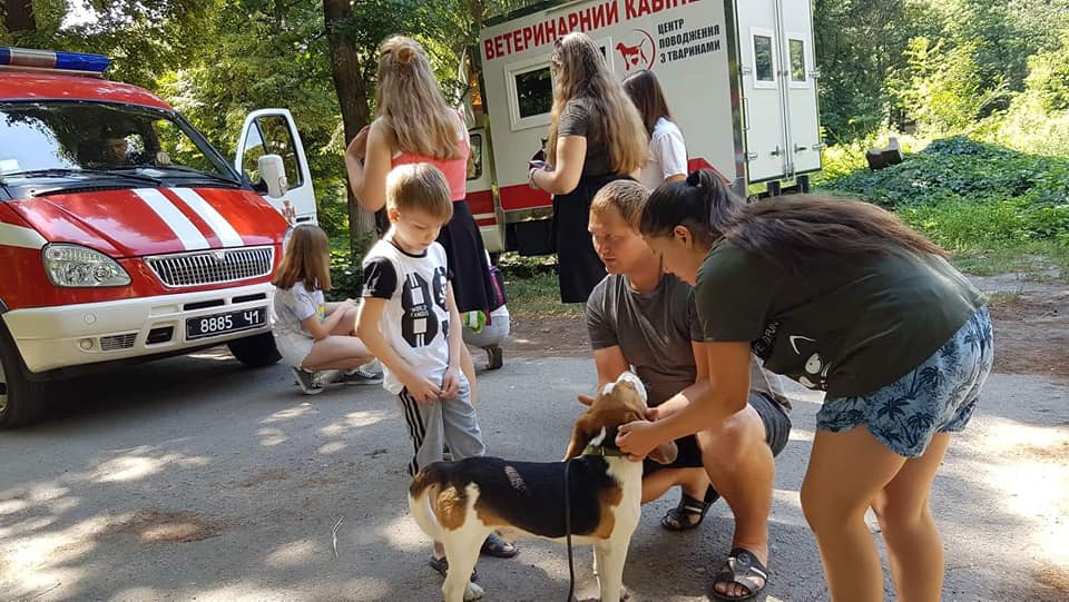 Кинолог Центра обращения с животными Петр Полященко провел лекцию на тему правильного обращения с собаками, а в этом ему помогли лабрадоры Ника и Адель с биглем Снуппи.