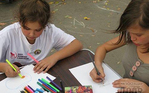 Параллельно с динамичными конкурсами проводился: конкурс песни, «Грим лица» – собачьи и кошачьи мордочки и конкурс рисунка «Я люблю животных».