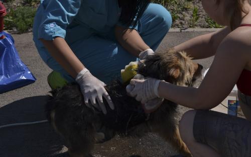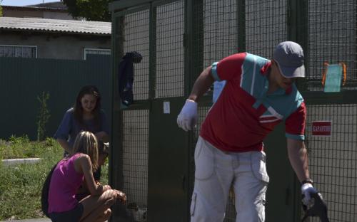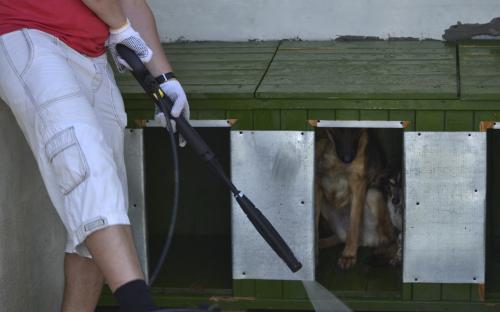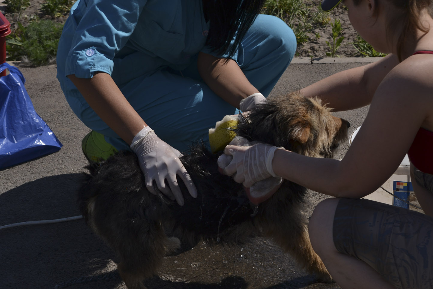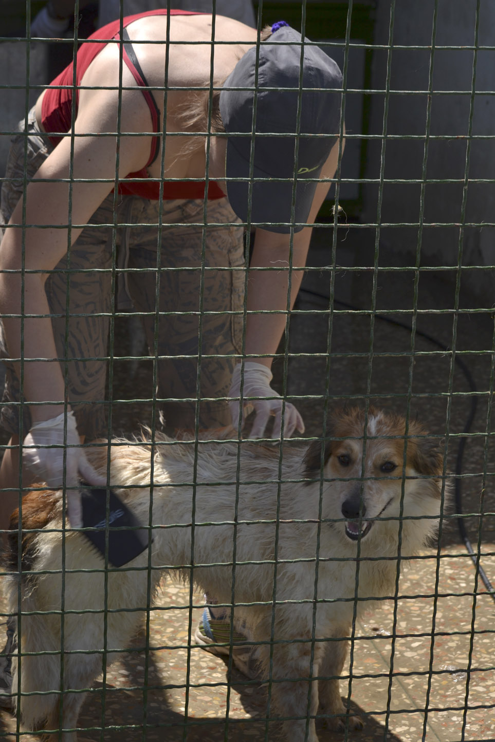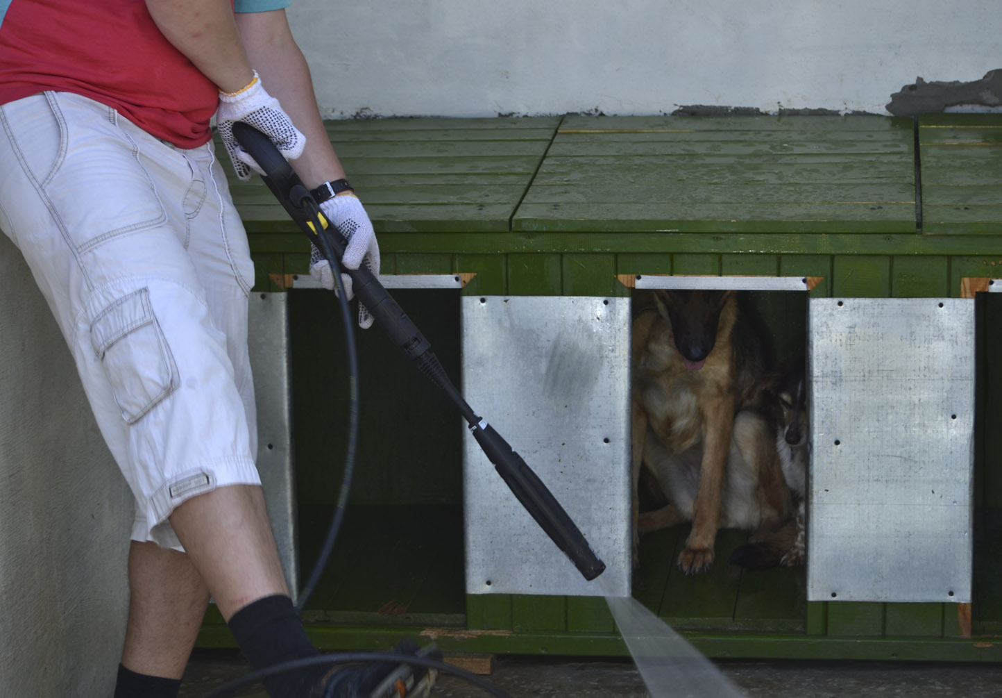 Волонтеры приехали к 10 утра и многие работали до самого вечера. Очень удачно, что захватили с собой моечный аппарат высокого давления, т.к. приютский Керхер находится в ремонте. Благодаря этому, удалось помыть 30 вольеров.