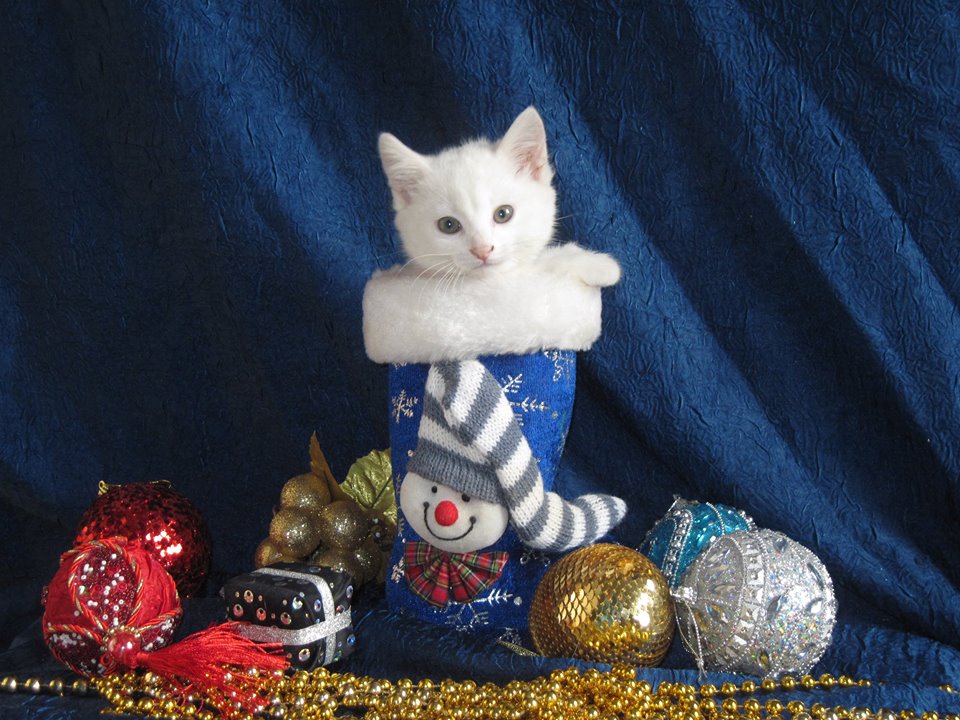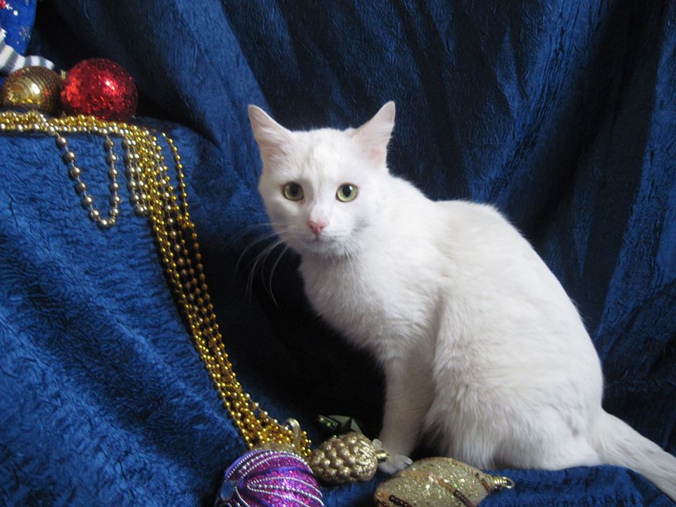 Но что же делать, если за окошком снега совсем нет? Создать новогодние настроение и уют в доме можно, забрав домой белого пушистого котика из Городского приюта для животных. Мурлыкающий белый комочек принесет много радости и не только в наступающем году.